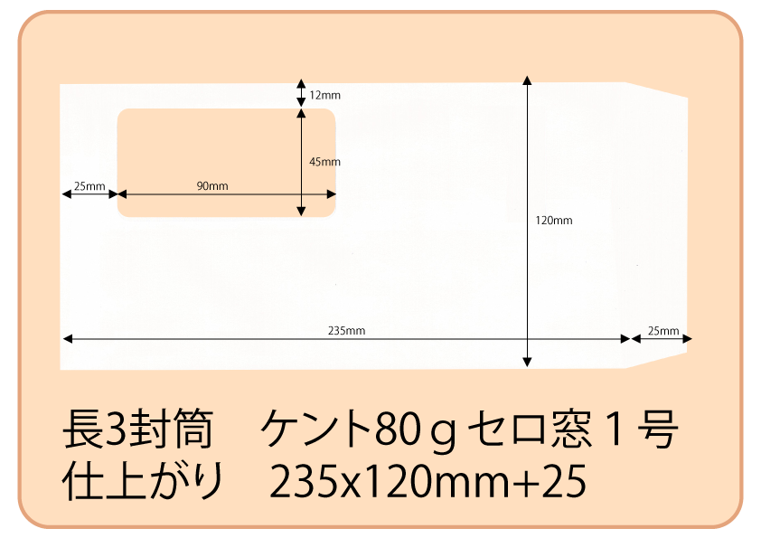 長3窓付き封筒(83円切手)の印刷