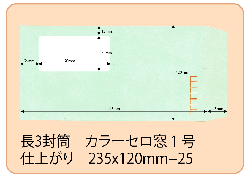 長3セロ窓1号封筒 カラー 85g 黒単色刷り